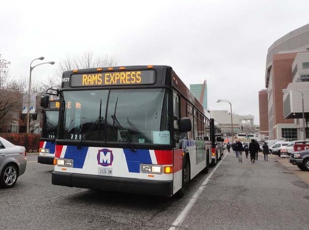 Pictured here is a Rams Express MetroBus on Cole Street in 2011 — an era in which the blue and gold were, sadly, perpetual cellar dwellers.